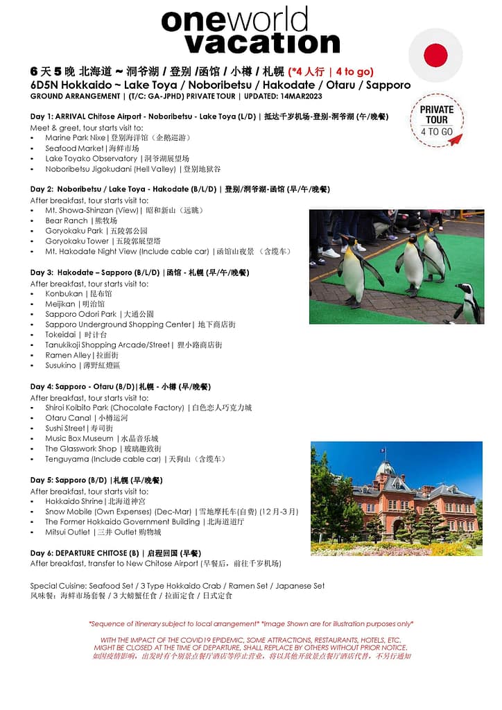 Hokkaido ~ Lake Toya / Noboribetsu / Hakodate / Otaru / Sapporo
