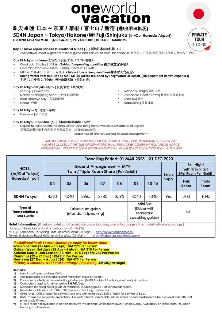 Japan – Tokyo / Hakone / Mt Fuji / Shinjuku (PRIVATE) – In/Out Haneda Airport